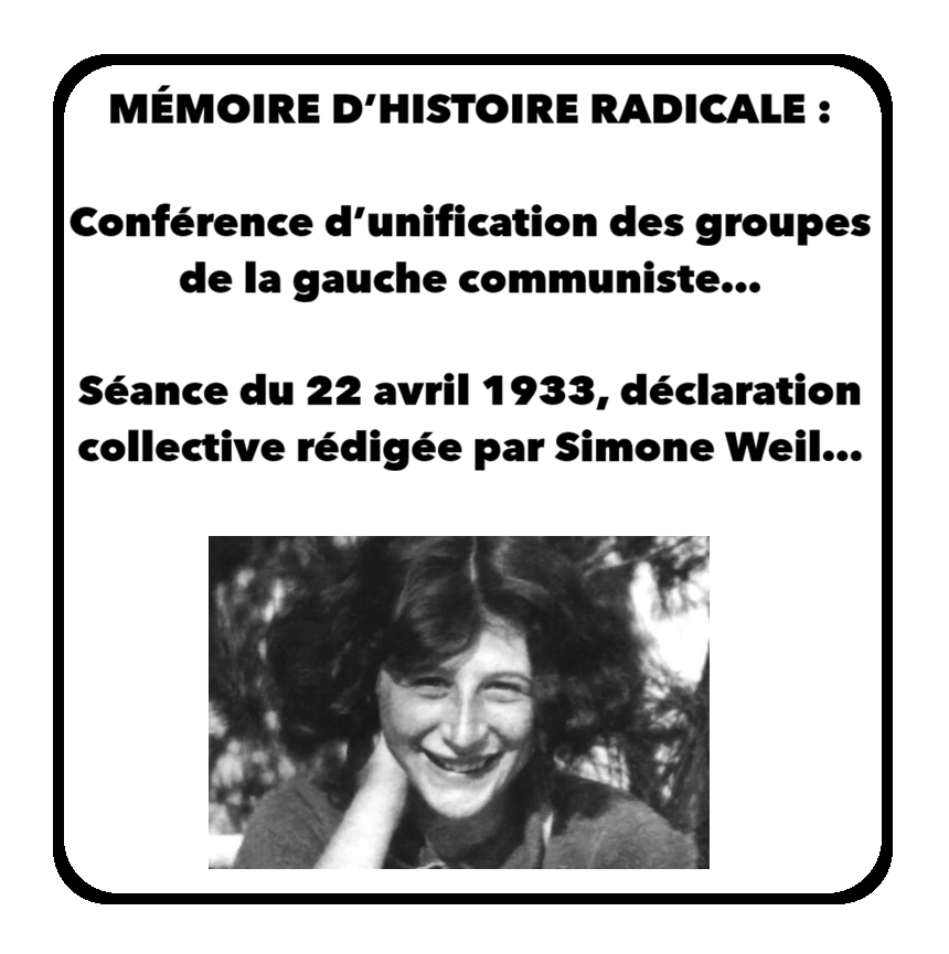 Séance du 22 avril 1933, déclaration collective rédigée par Simone Weil…