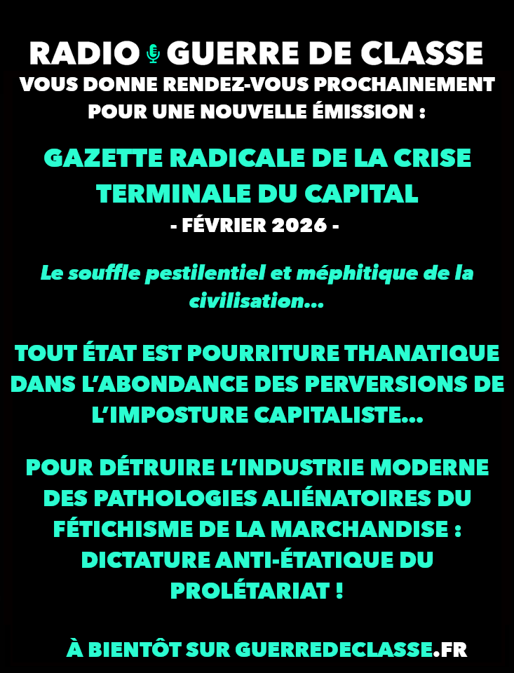 Guerre de Classe présente : GAZETTE RADICALE DE LA CRISE TERMINALE DU CAPITAL – JANVIER 2026 Le communisme est le […]