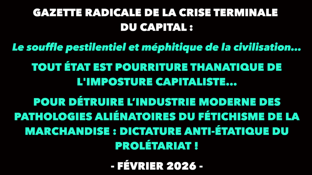 Guerre de Classe présente : GAZETTE RADICALE DE LA CRISE TERMINALE DU CAPITAL – FÉVRIER 2026 Le souffle pestilentiel et […]