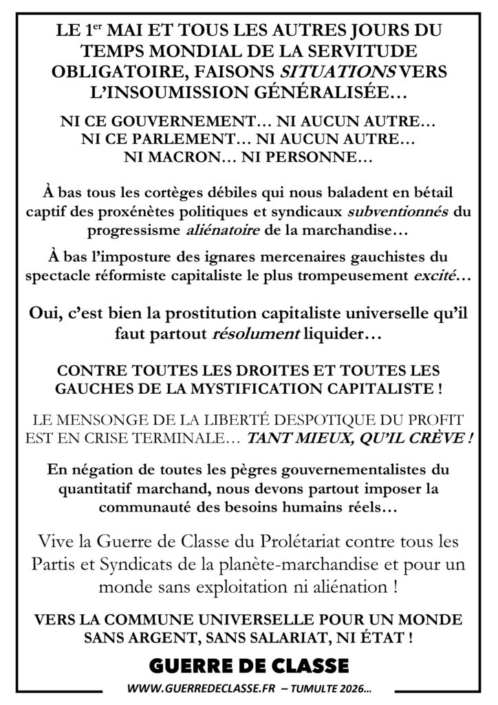 Guerre de Classe présente : GAZETTE RADICALE DE LA CRISE TERMINALE DU CAPITAL – MARS 2026 – Le Capital est […]