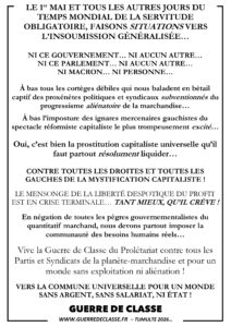 10 Par-delà les avantages immédiats que décrit ici Lefrançais, la prise de la Banque de France n’aurait rien changé au devenir du capitalisme alors en pleine ascension vers sa domination pleinement réalisée. Du reste, l’anéantissement du capitalisme ne procédera de la prise d’aucune banque, mais de l’auto-anéantissement de la loi de la valeur elle-même et de l’éveil nécessairement concomitant de la conscience humaine révolutionnaire contre toutes les banques, contre l’argent et contre l’État (voir en ligne le texte OUI, LE CAPITAL VA NÉCESSAIREMENT MOURIR…).