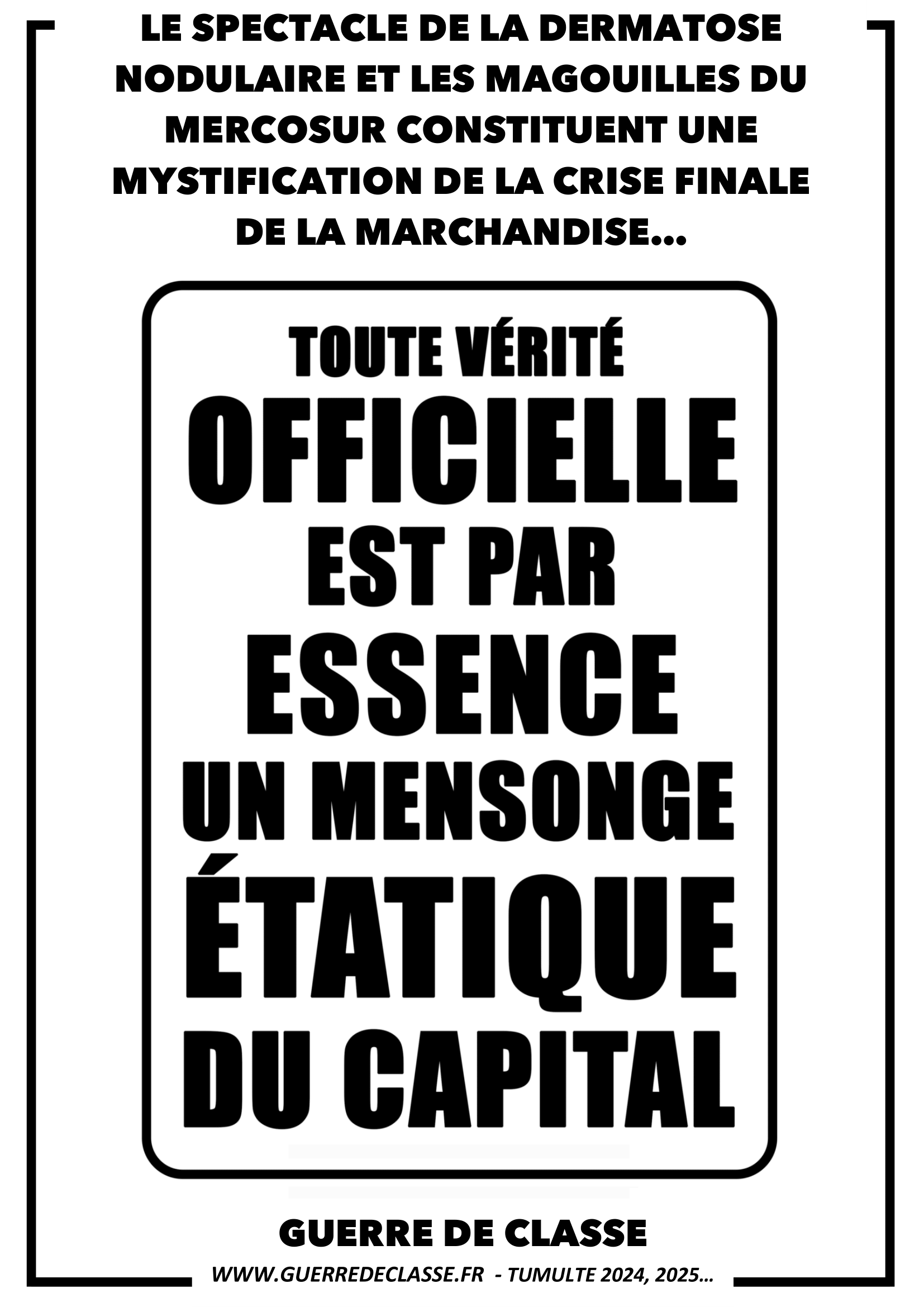 LE SPECTACLE DE LA DERMATOSE NODULAIRE ET LES MAGOUILLES DU MERCOSUR CONSTITUENT UNE MYSTIFICATION DE LA CRISE FINALE DE LA MARCHANDISE…