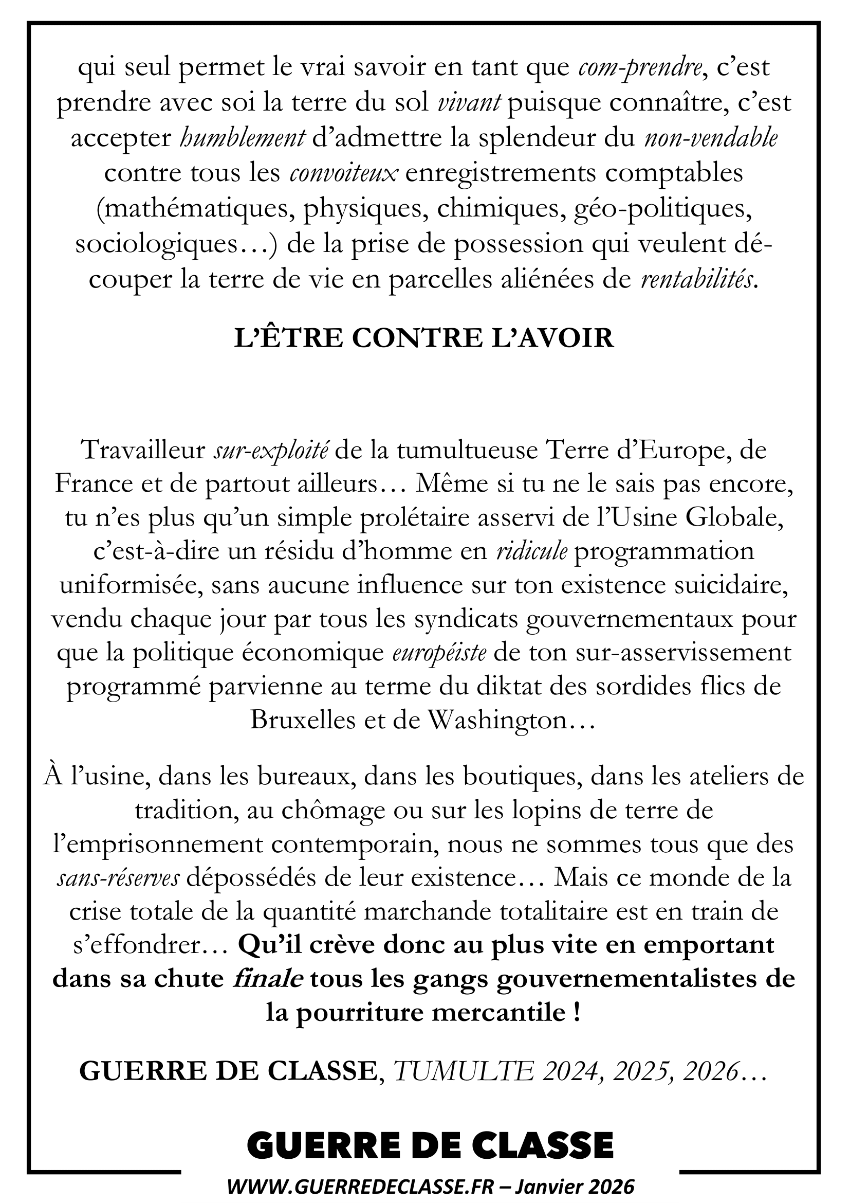 GUERRE DE CLASSE, TUMULTE 2024, 2025, 2026…