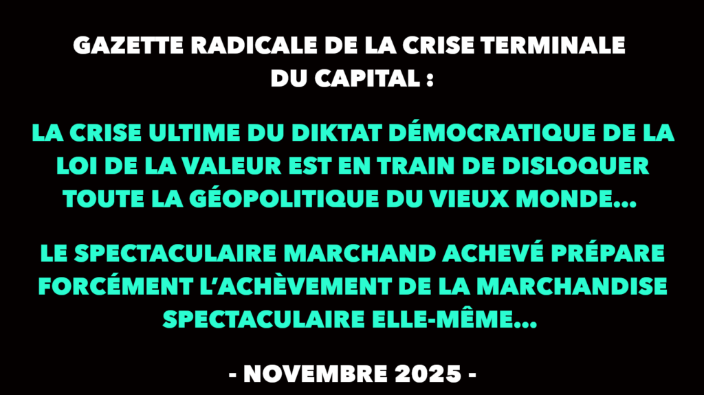 Guerre de classe présente : GAZETTE RADICALE DE LA CRISE TERMINALE DU CAPITAL – NOVEMBRE 2025 Alors, ce siècle ouvrira […]